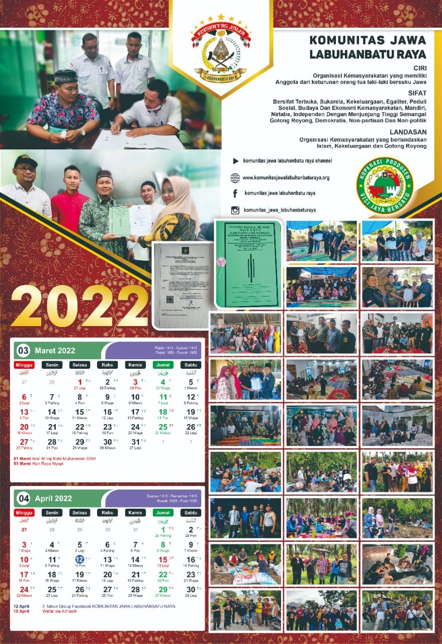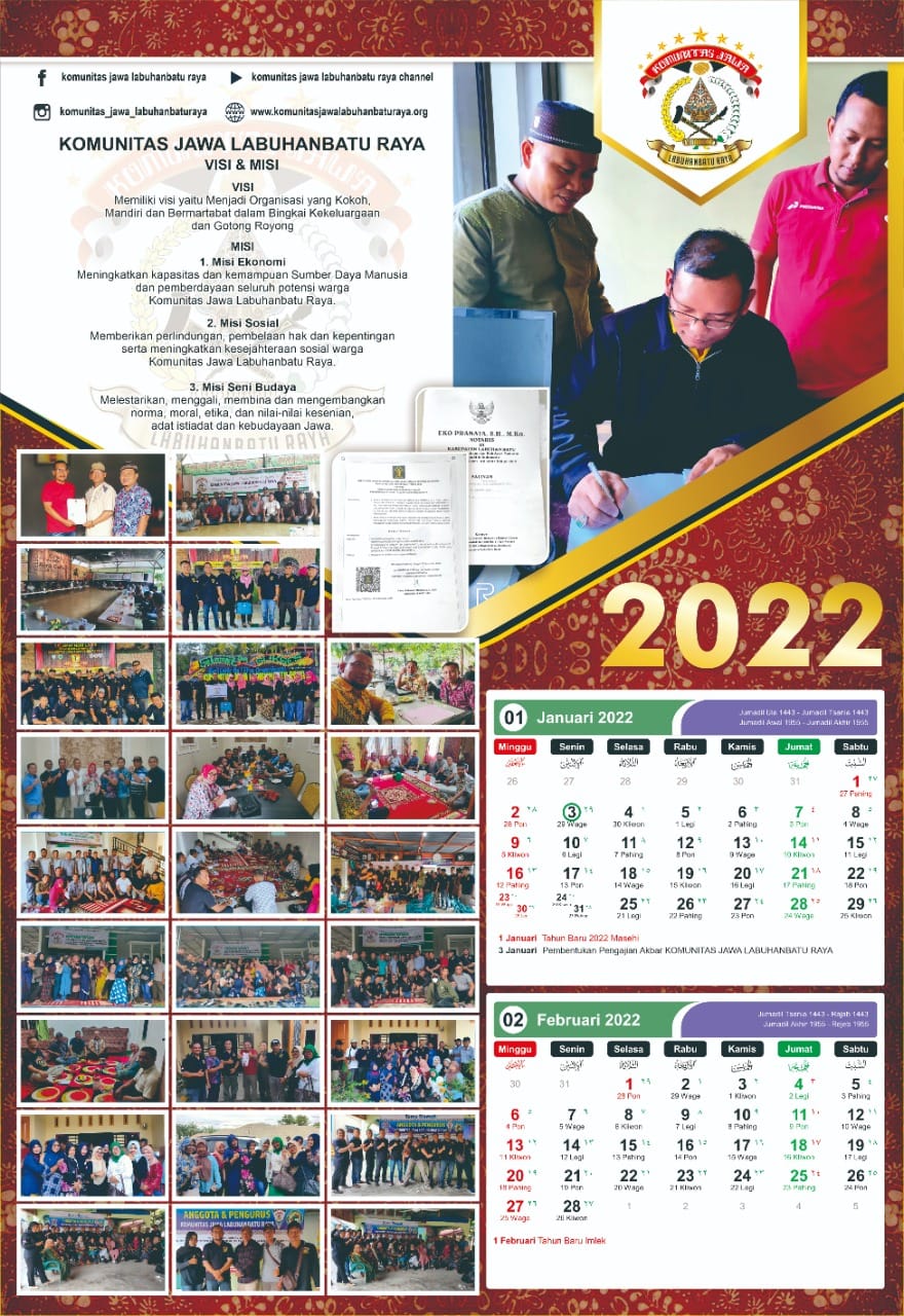 Kalender KOMUNITAS JAWA LABUHANBATU RAYA Tahun 2022.