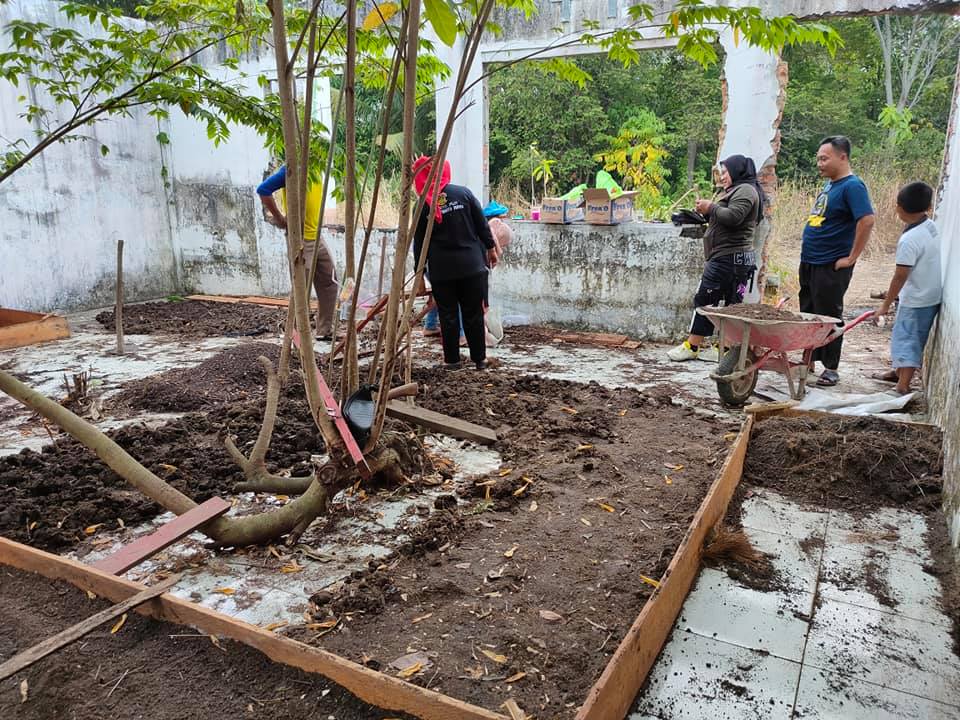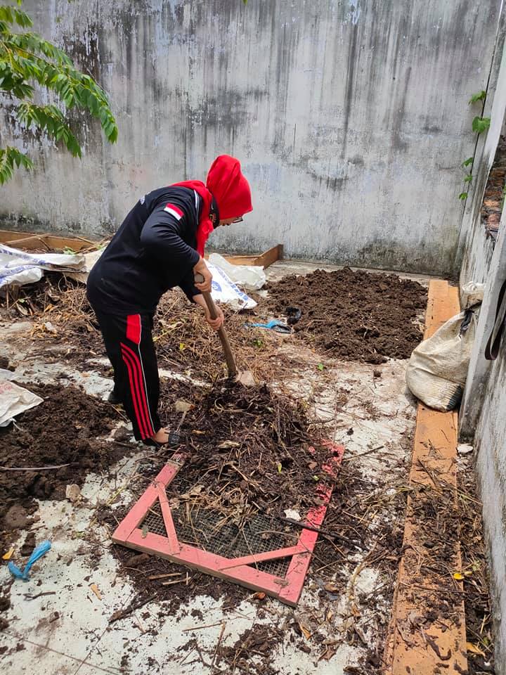Bergotong Royong dalam upaya pelaksanaan Budidaya Rimpang Jahe Merah. Hari Minggu itu mempersiapkan media penyemaian Bibit Jahe Merah di Rantauprapat, Kab. Labuhanbatu.