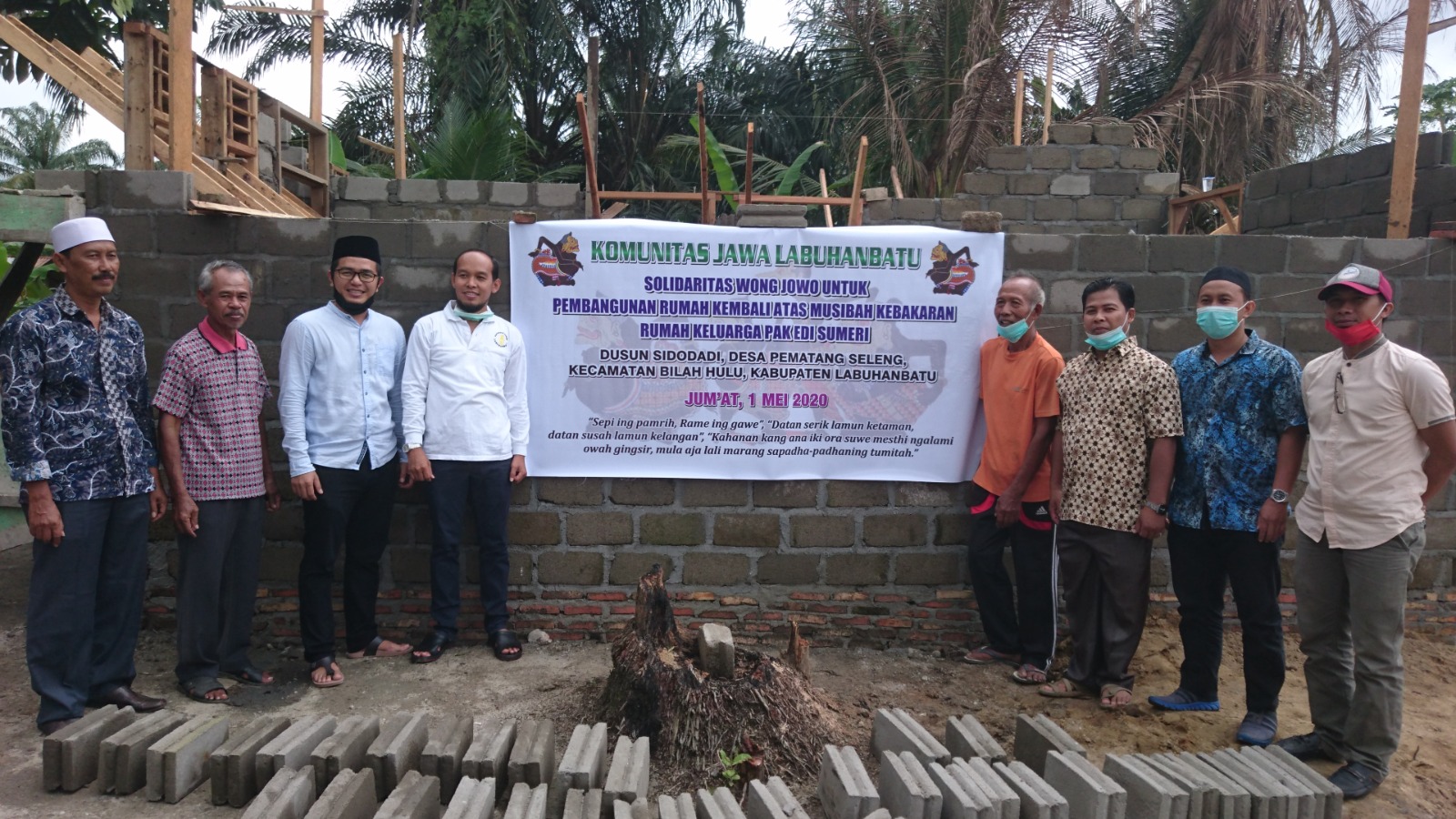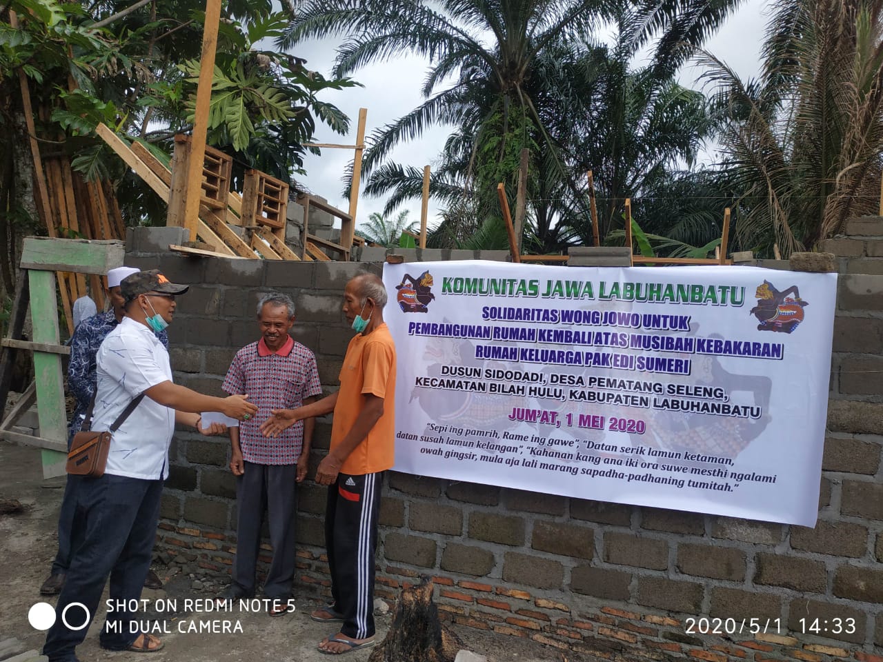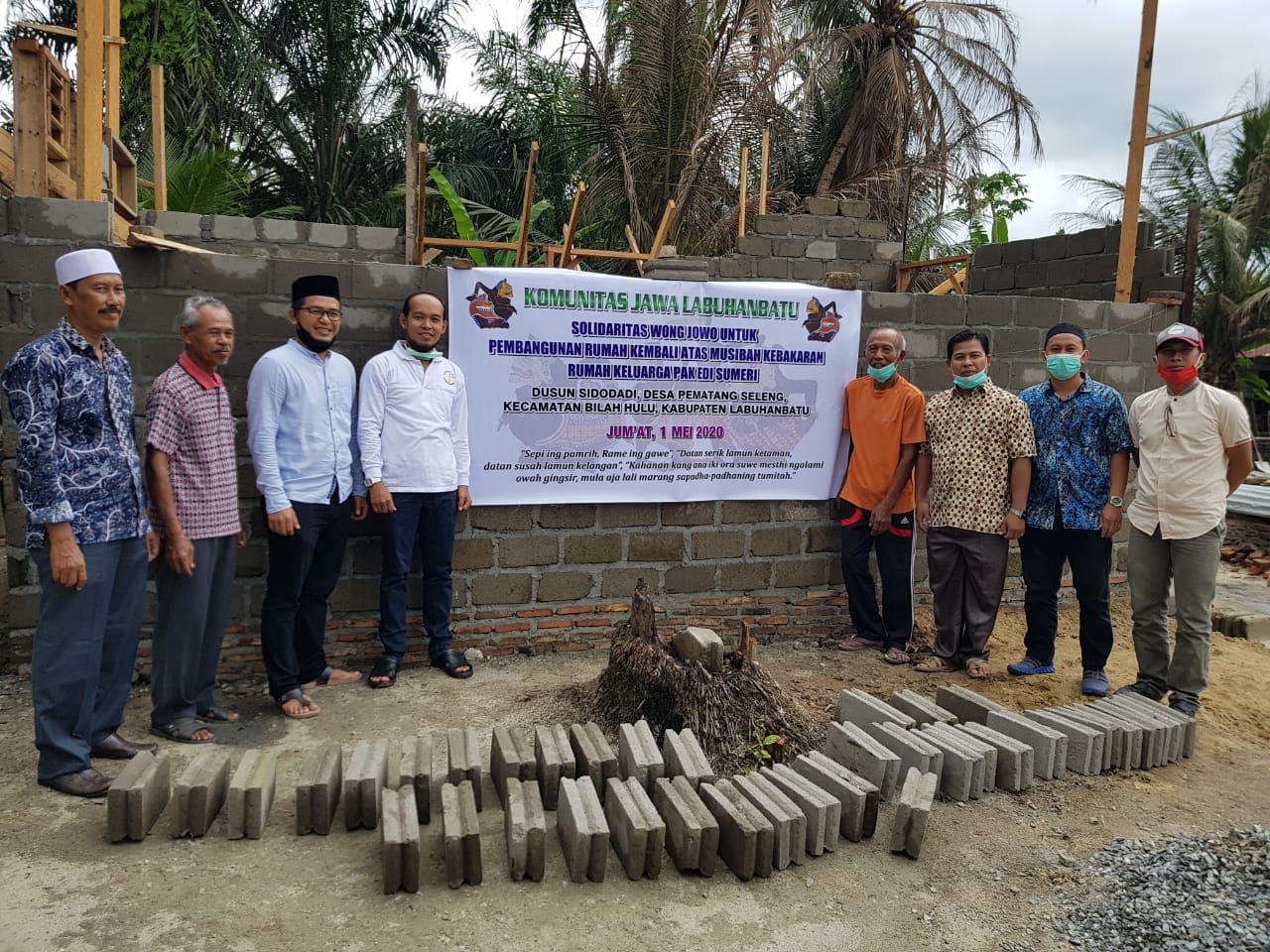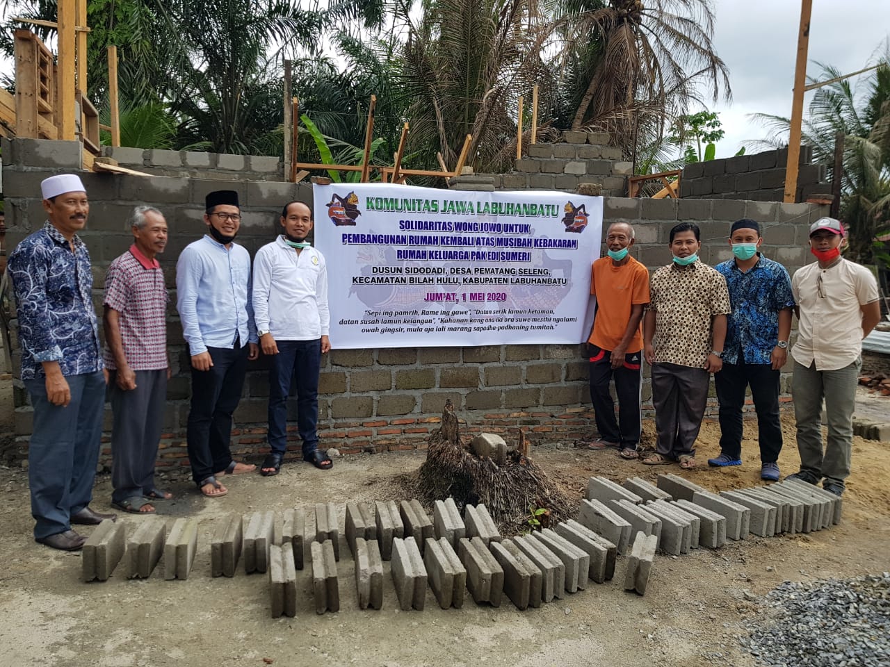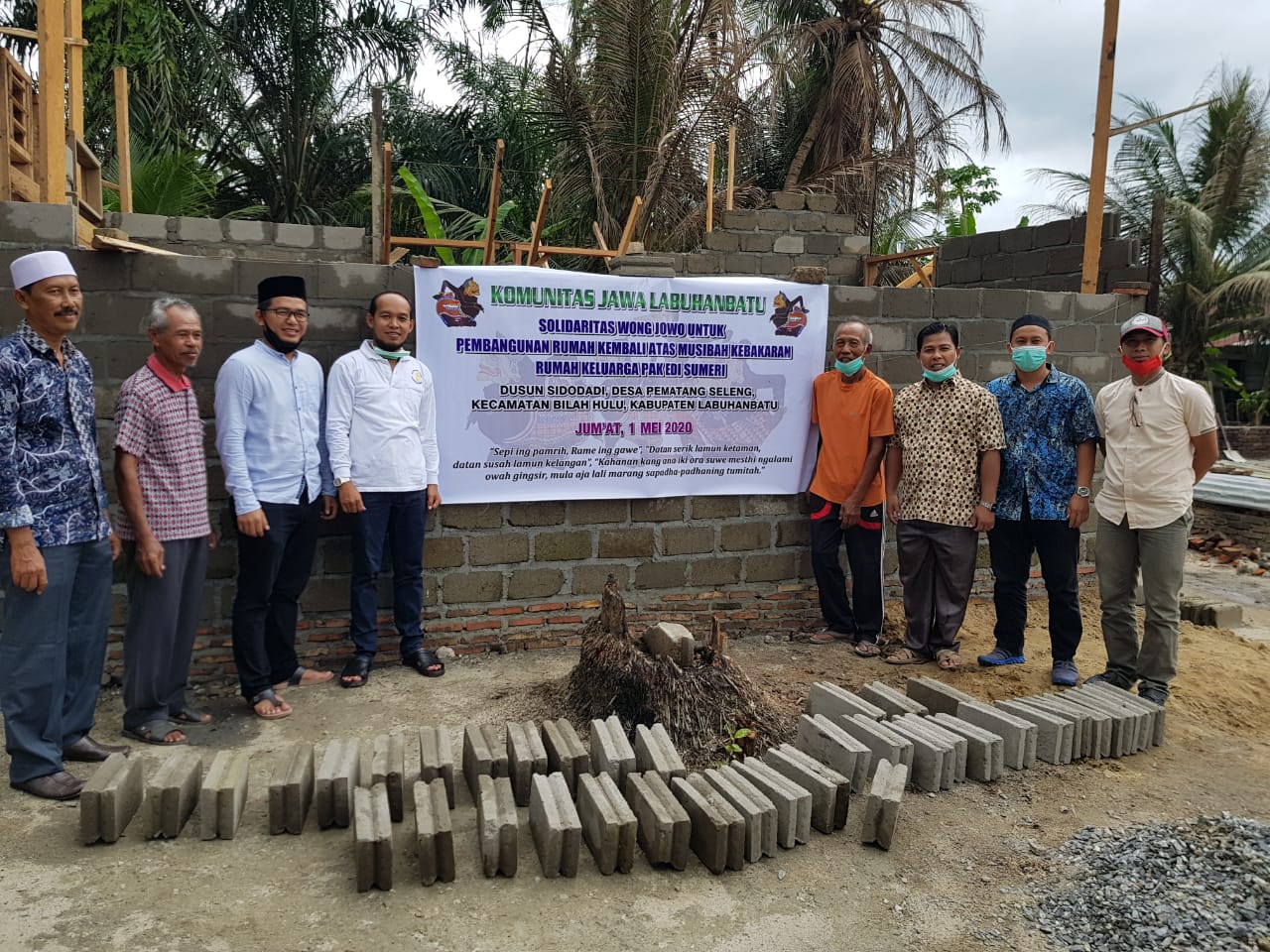 Bantuan Donasi dibelikan Bahan material bangunan yaitu 32 Zak Semen (@50 Kg), 2,5 Kodi Seng (Uk. 8 kaki), dan Uang Tunai Rp 1.100.000,-. Semua diserahkan langsung kepada ahli musibah Bapak Edi Sumeri yang di saksikan oleh Kades Pematang Seleng dan Ketua BPD Pematang Seleng (selaku ketua pembangunan rumah) dan anggota Komunitas Jawa Labuhanbatu yang ikut berhadir dalam penyerahan bantuan. Semoga Berkah dan Bermanfaat.