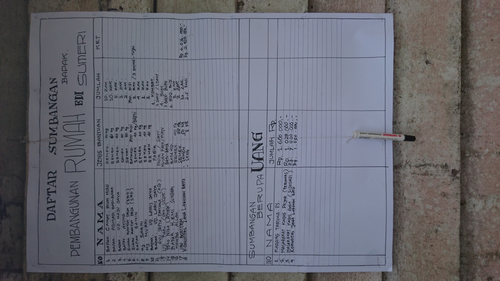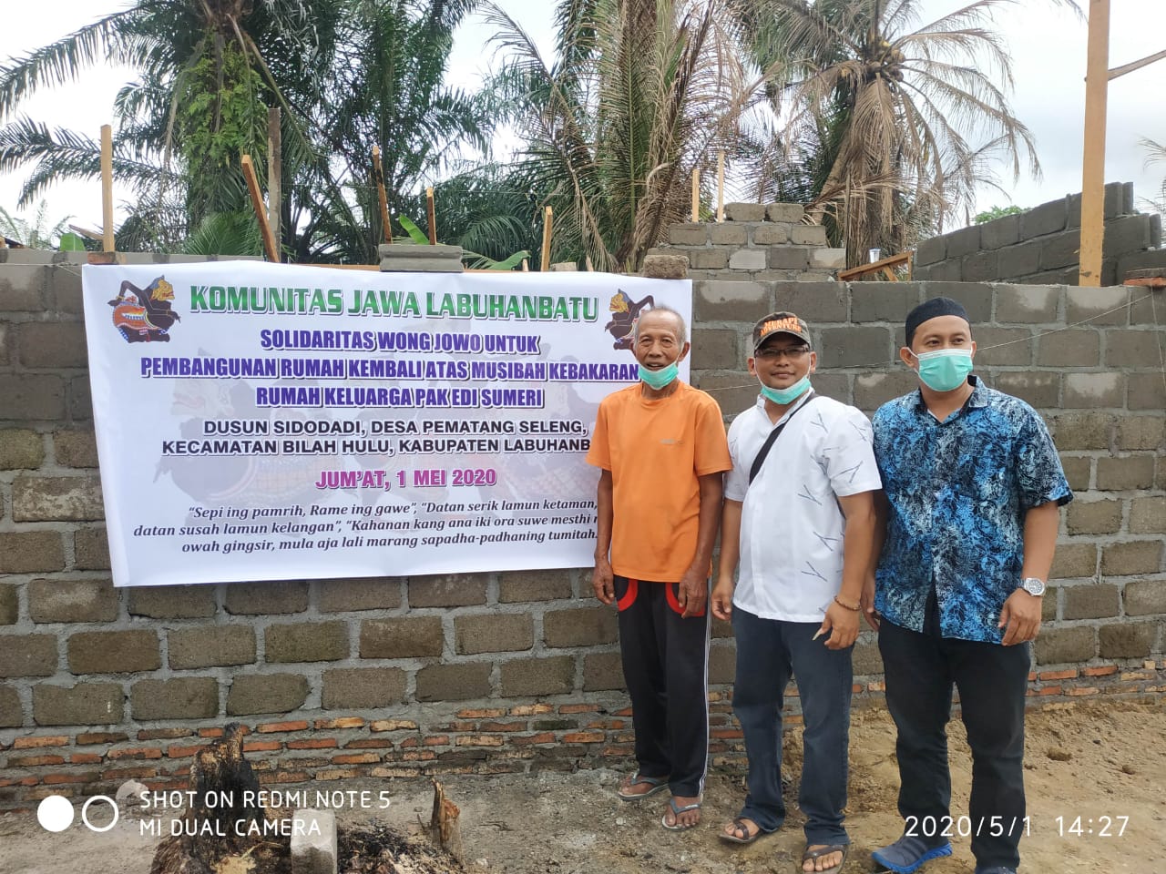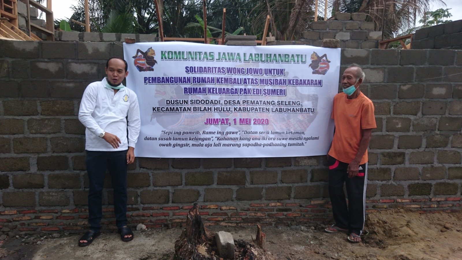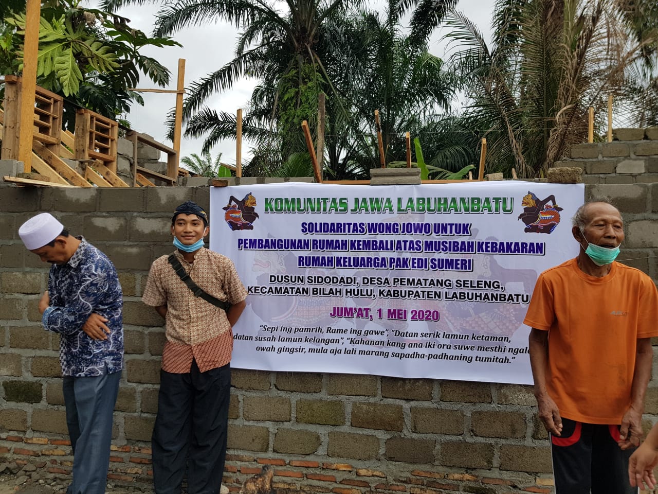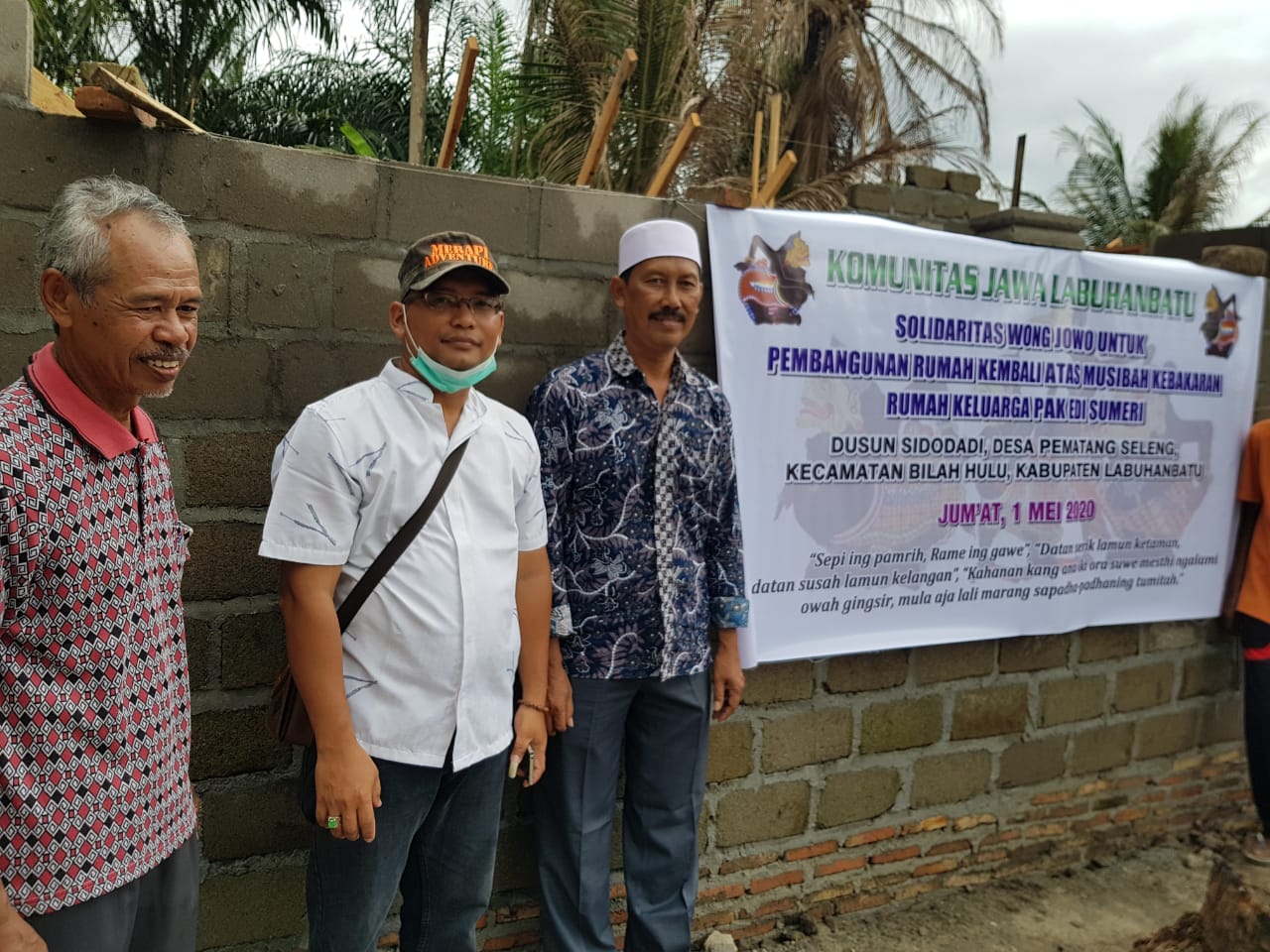 Bantuan Donasi dibelikan Bahan material bangunan yaitu 32 Zak Semen (@50 Kg), 2,5 Kodi Seng (Uk. 8 kaki), dan Uang Tunai Rp 1.100.000,-. Semua diserahkan langsung kepada ahli musibah Bapak Edi Sumeri yang di saksikan oleh Kades Pematang Seleng dan Ketua BPD Pematang Seleng (selaku ketua pembangunan rumah) dan anggota Komunitas Jawa Labuhanbatu yang ikut berhadir dalam penyerahan bantuan. Semoga Berkah dan Bermanfaat.