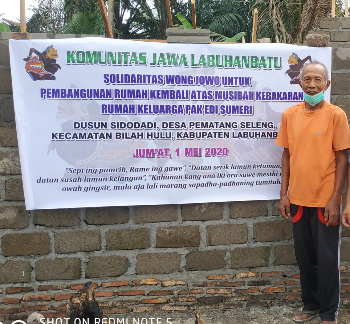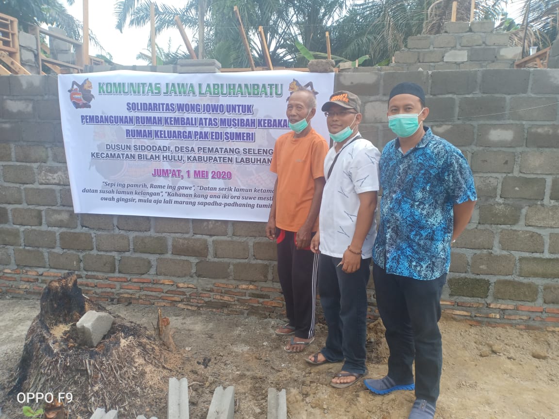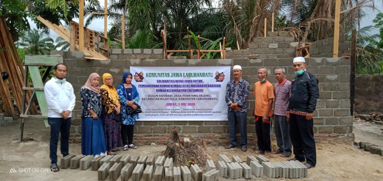 KOMUNITAS JAWA LABUHANBATU dalam kegiatan Sosial memiliki Program "KOMUNITAS JAWA LABUHANBATU BERBAGI". Untuk kegiatan Sosialnya yang Pertama Sekali dilaksanakan adalah membantu pembangunan kembali rumah Bapak Edi Sumeri yang mengalami musibah kebakaran rumahnya di Dusun Sidodadi, Desa Pematang Seleng, Kec. Bilah Hulu, Kab. Labuhanbatu.