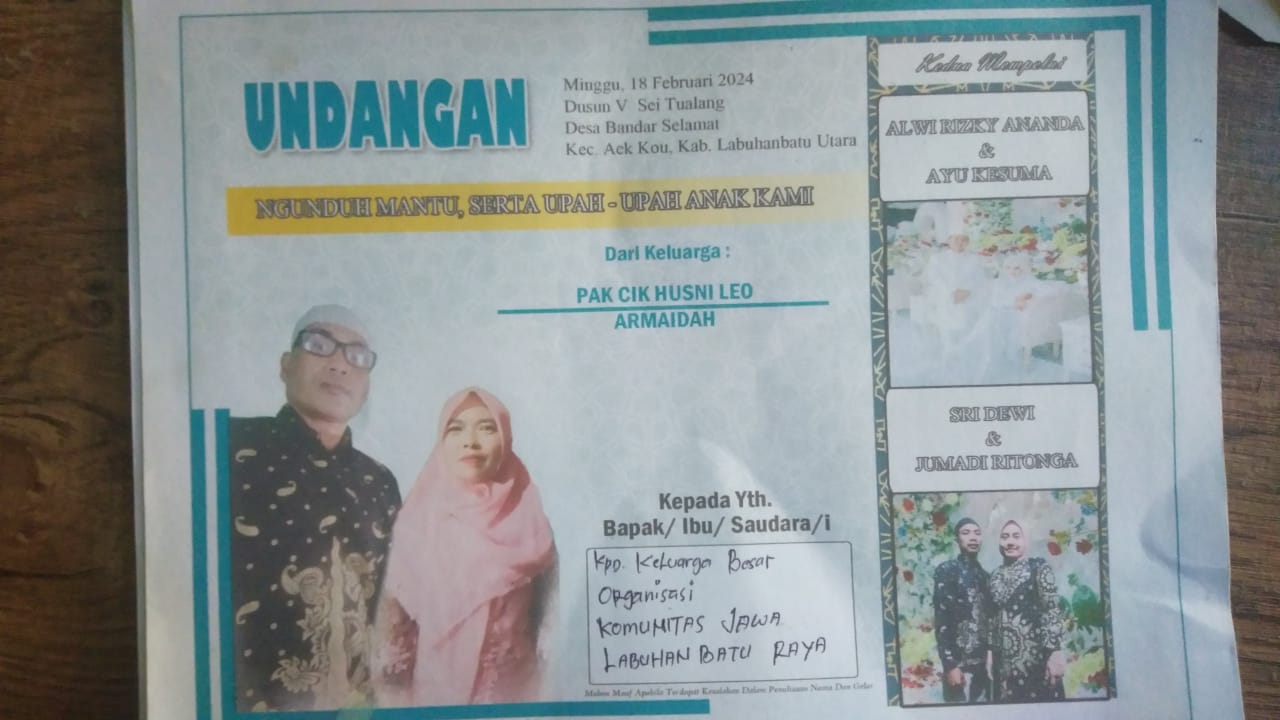 Keluarga Besar organisasi KOMUNITAS JAWA LABUHANBATU RAYA Memenuhi undangan Resepsi Pernikahan Adak dari salah seorang Anggota KJL RAYA, STM dan Pengajian KJL RAYA, Mas Kartiman Husni Leo di Aek Kuo.